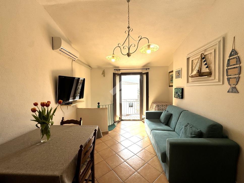 Dal piano terra, tramite una scala a chiocciola, accediamo al piano primo, dove si sviluppa su unico livello l'unità immobiliare. Internamente veniamo accolti da un luminoso soggiorno, di buone dimensioni e fornito di angolo cottura. La zona notte è costituita da due graziose camere da letto e dal bagno. Un balcone frontale si estende per tutta la larghezza della casa, con la possibilità di accedervi sia dal soggiorno che dalla cameretta. L'immobile si distingue per l'ottimo stato manutentivo e viene ceduto completo di arredi. Consigliamo la soluzione per l'assenza di lavori da effettuare e la vicinanza sia alle spiagge che ai principali servizi.